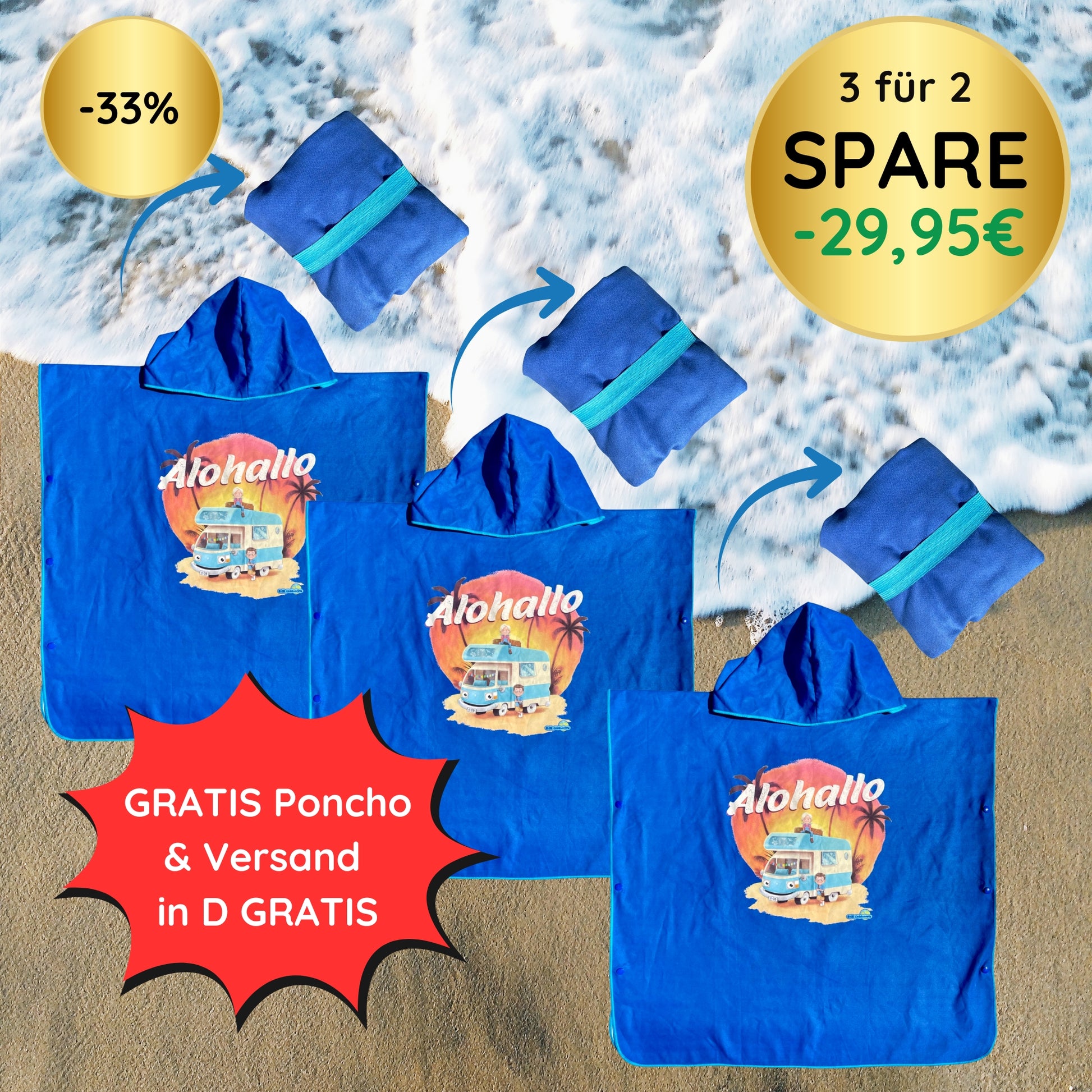 Mit den B-OB Coddiwomple Bade-Ponchos wird das alles viel einfacher. Und jetzt kannst du dir gleich drei davon sichern – und bezahlst nur zwei! Perfekt für Geschwister, Freunde oder einfach als Ersatz-Poncho für unterwegs.