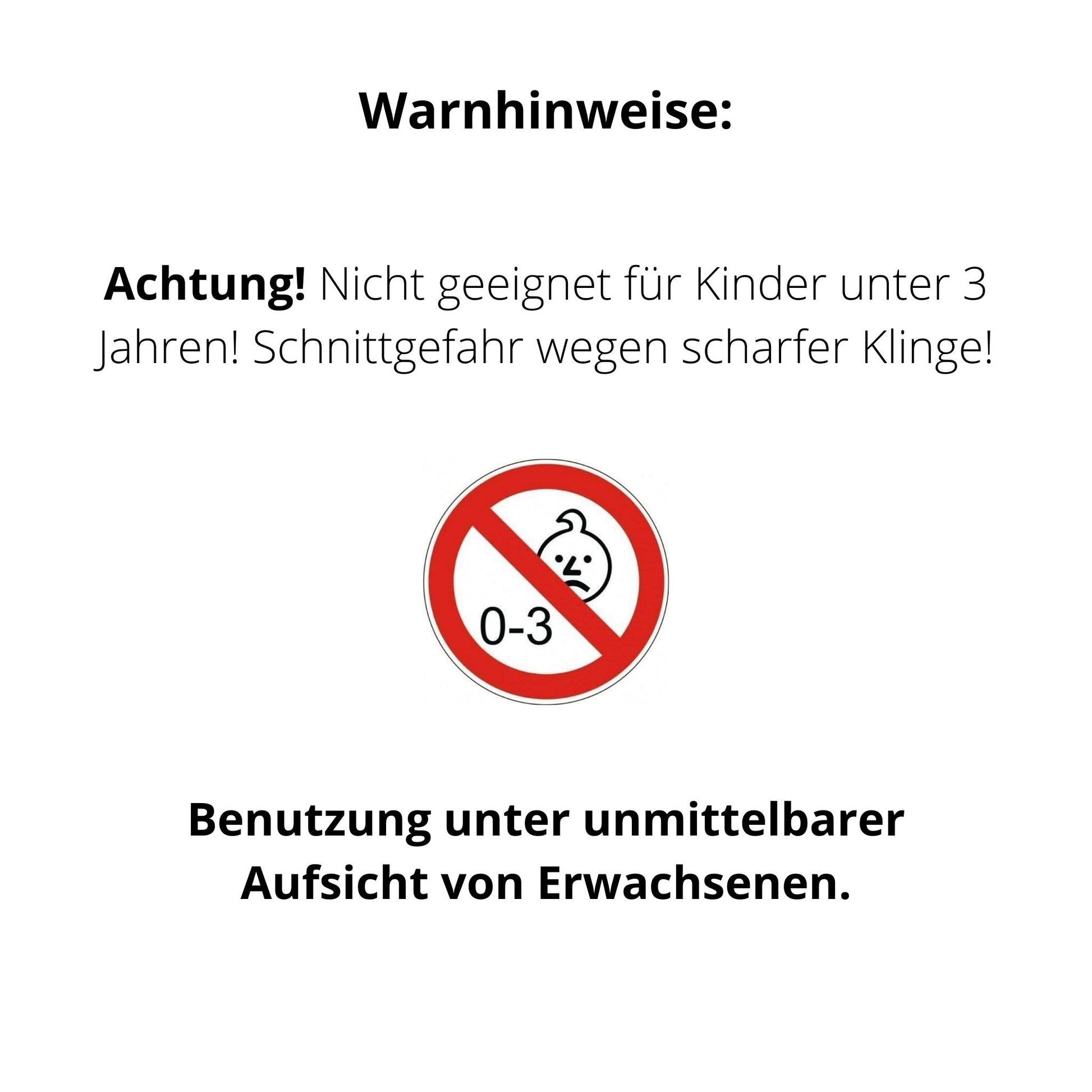 - Achtung! Für Kinder unter 3 Jahren nicht geeignet! Schnittgefahr an scharfer Klinge!