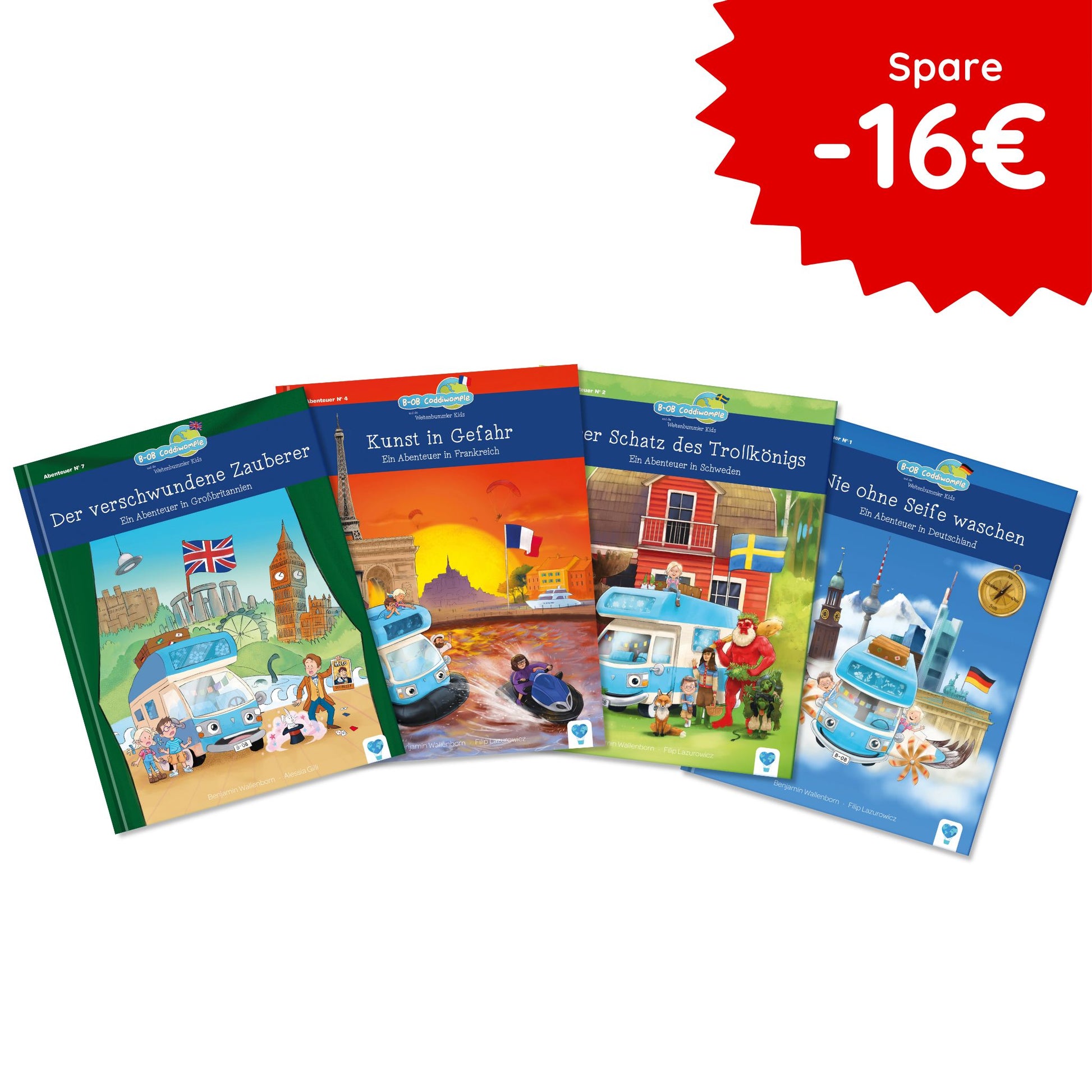 Mit dem Europa-Paket reisen Line, Benni & das magische Wohnmobil B-OB durch vier Länder voller Abenteuer: