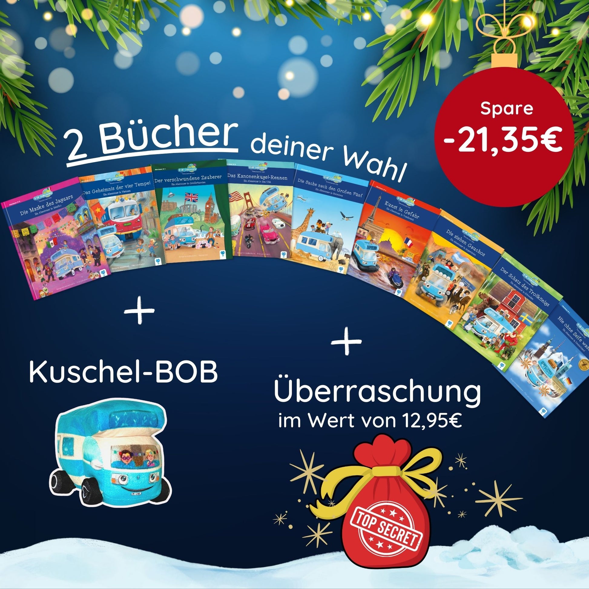 2 Bücher deiner Wahl + Kuschel-BOB + geheime Weihnachtsüberraschung im Wert von 12,95€